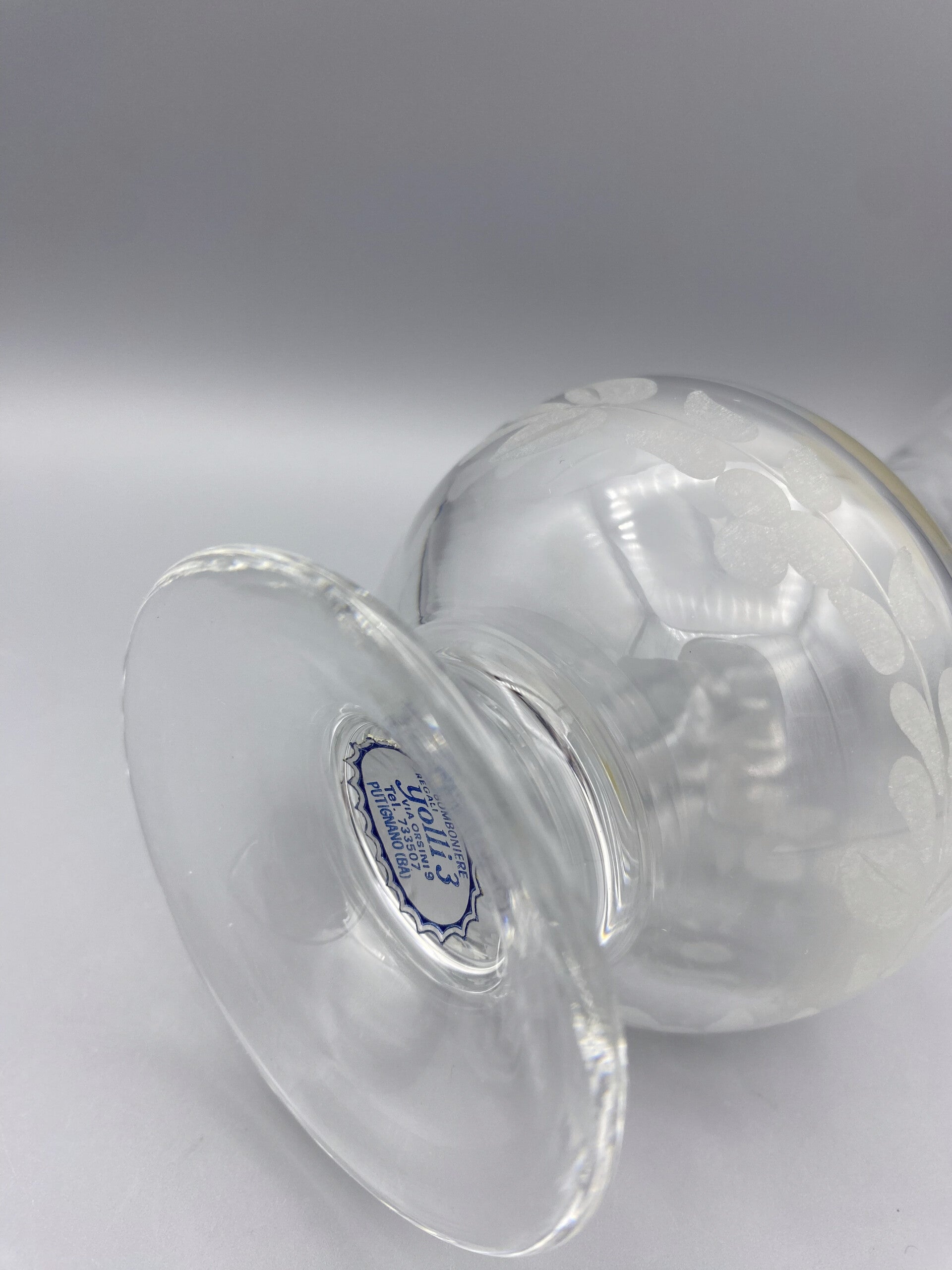 Prachtig vaasje met gegraveerd decor, 24 % loodkristal. Met originele stickers, en er is een signatuur te ontdekken. In zeer goede staat.