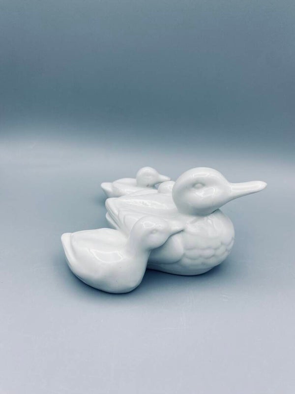 Schattig beeldje, wit porselein van een groep eendjes. Het is in perfecte staat, heeft wat maak foutjes maar geen beschadigingen.