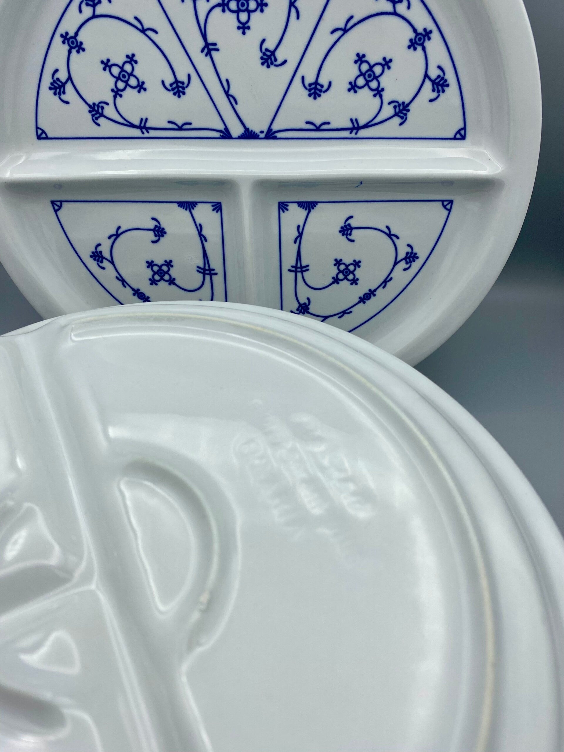 Als nieuw! Een set van 4, 3 vaks borden, voor gourmet, fondue, bbq of natuurlijk gewoon op tafel. De borden zijn gemerkt.