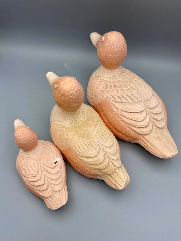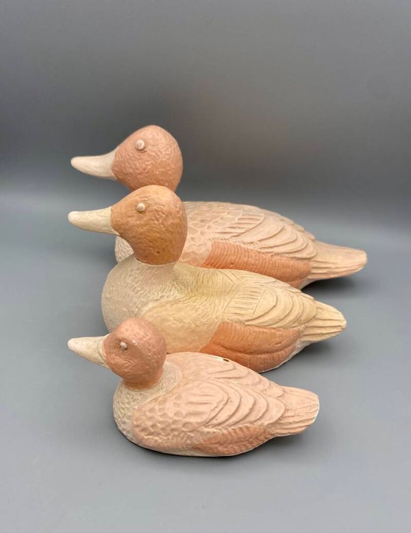 Enorm leuke set van 3 eenden! Vintage roze, 3 maten. Ze zijn in zeer goede staat, hebben wat vintage sporen. Een sticker geeft aan Emma Bloomfield Holland.