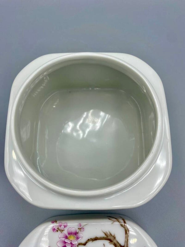Beeldschoon porselein doosje met Sakura en vogelprint. Het heeft een merkje en is in perfecte staat. Voor opbergen van je mooiste sieraden of gewoon ter deco.