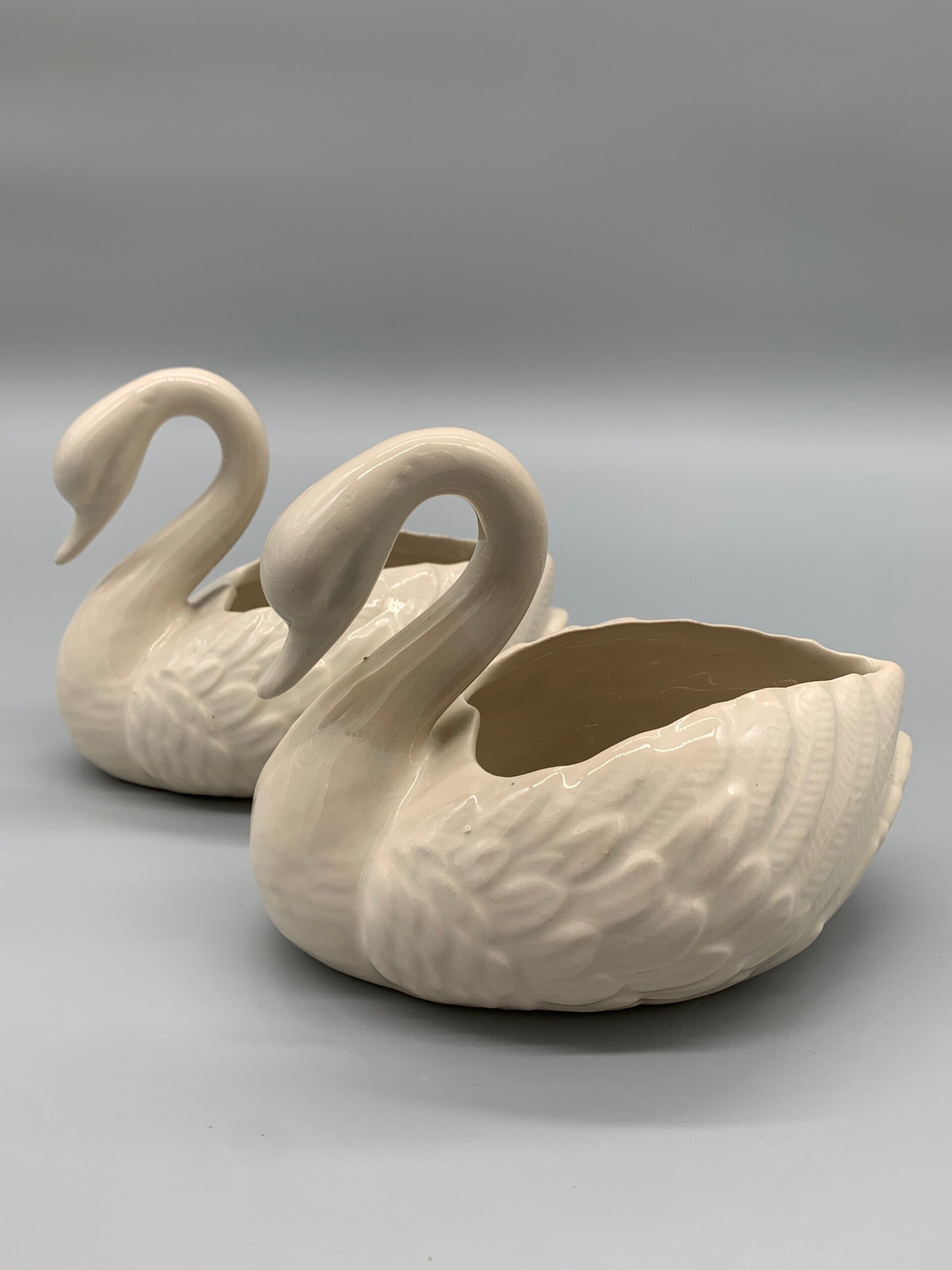 2 prachtige exemplaren in een tintje creme. Het zijn er 2 van een leuk formaat, en eigenlijk in perfecte staat. 1 van dit setje heeft een mini chip aan de binnenkant, zie foto. Ze zijn gemerkt.