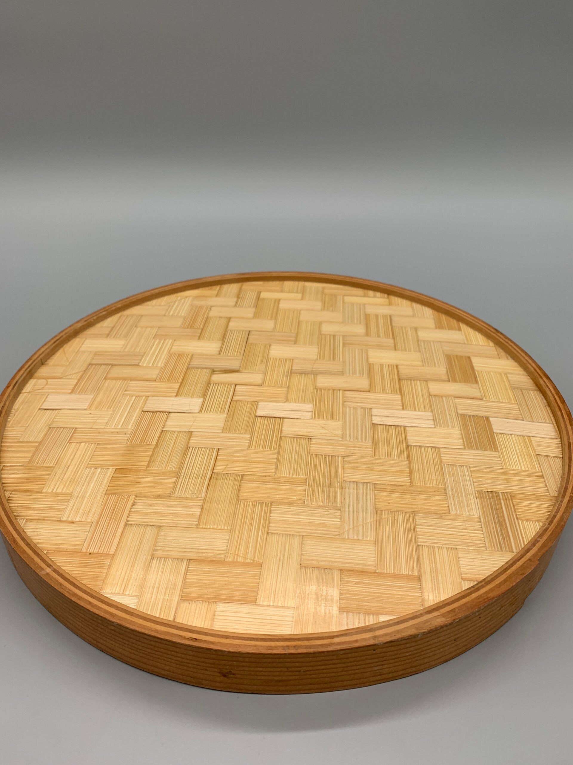 Afmetingen; Groot, doorsnede 30 cm en 3 cm hoog. Klein; 23 doorsnede 2 cm hoog