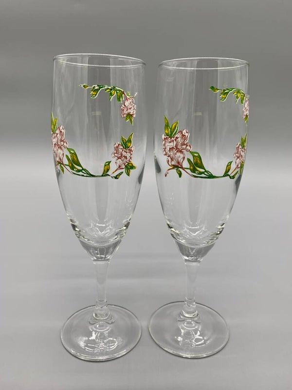Leuke vintage flutes met bloemenprint. Set van 2 in perfecte staat.