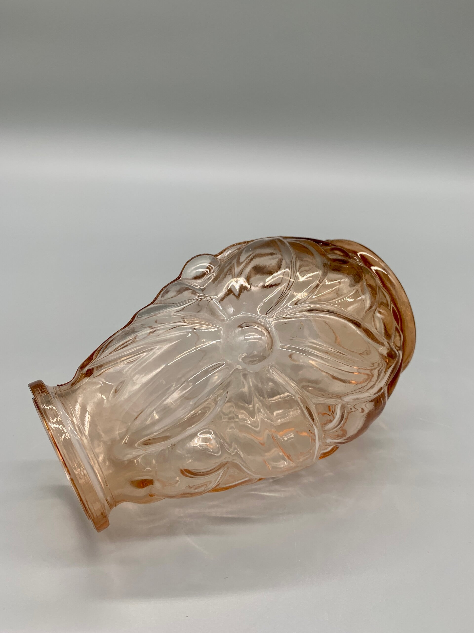 Wat een beeldig vaasje! Van mooi dik persglas met bloemmotief. Het heeft een mooie zachte oranje kleur en is in perfecte staat.