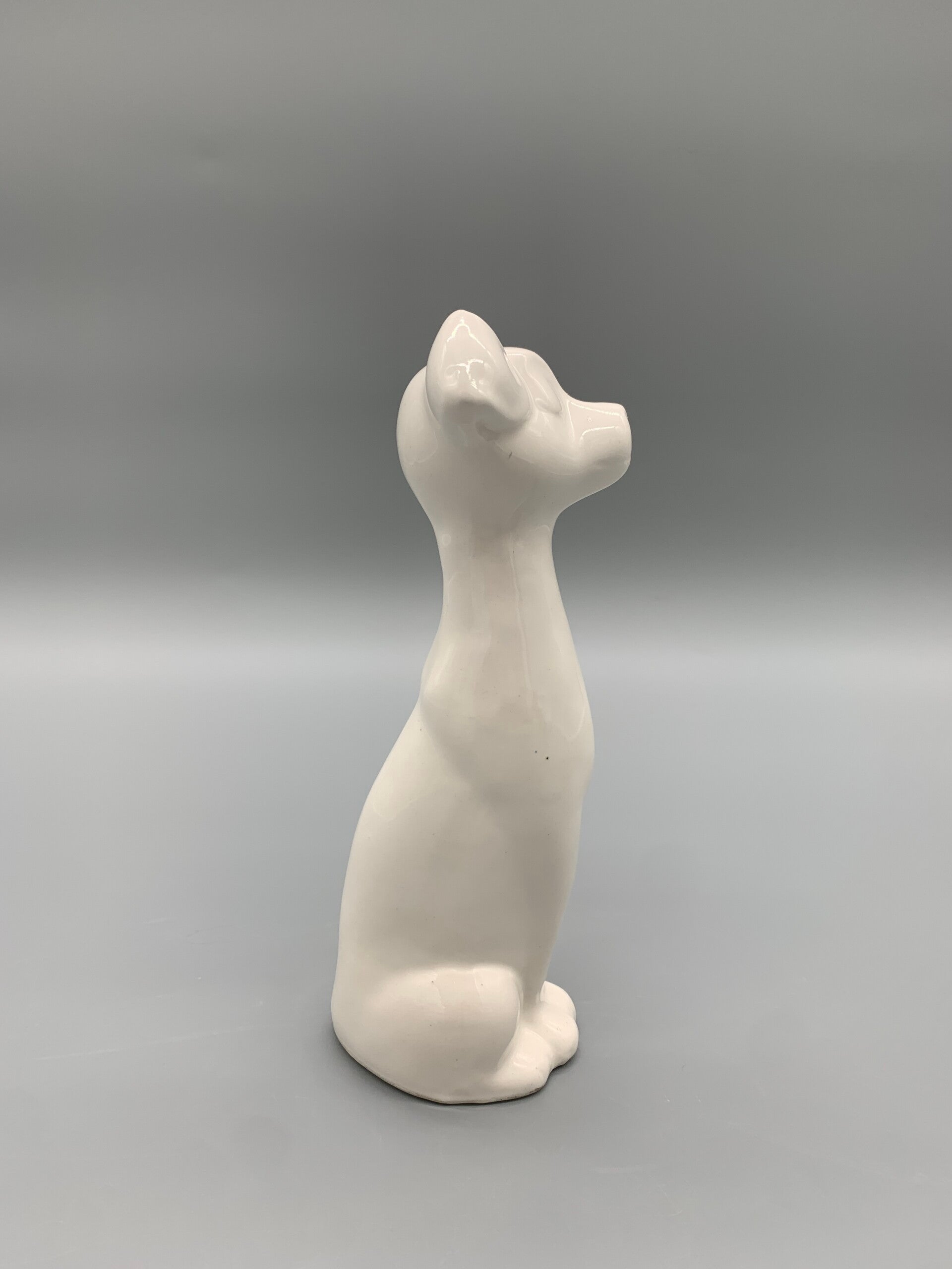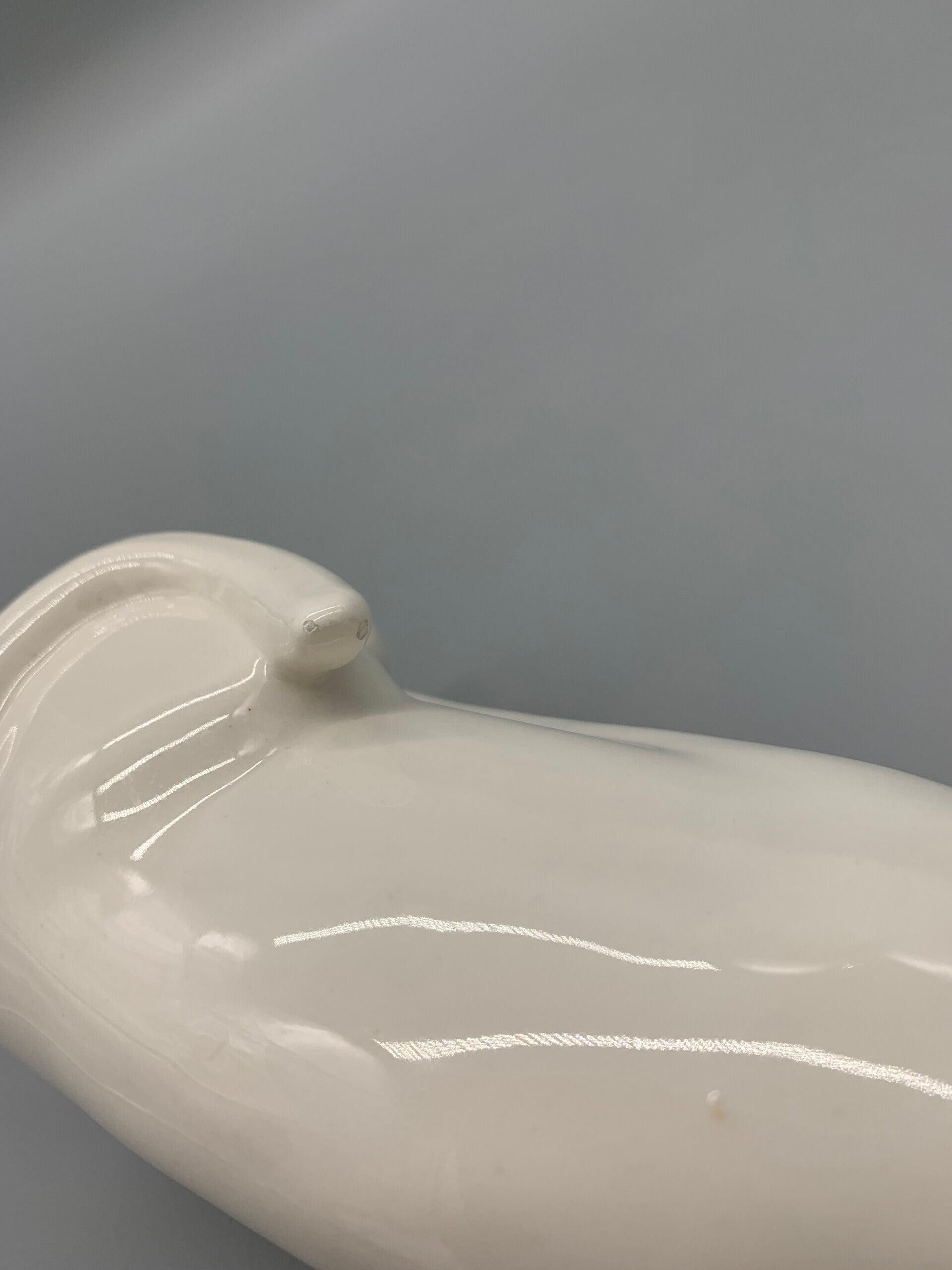 Enorm schattig deze deco in wit aardewerk. Hij is in goede staat aan te merken is een stip op zijn neus, mogelijk een kleine reparatie en een heel klein chipje aan de staat, zie foto's.
