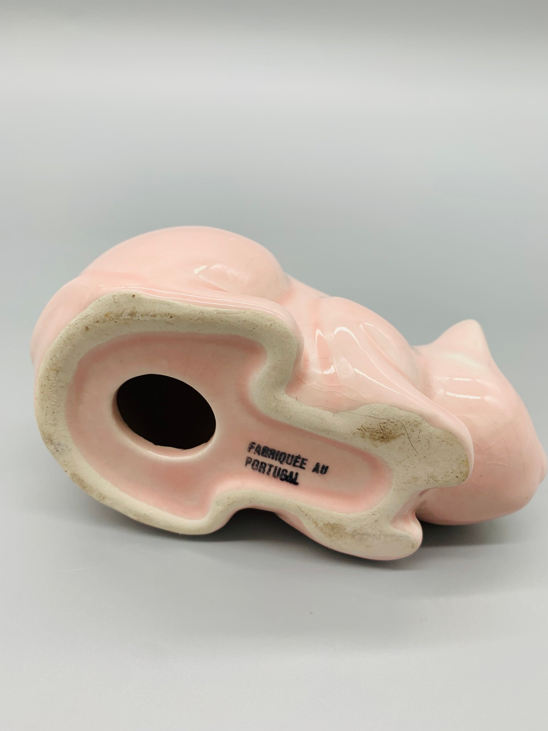 Klaar voor de aanval..! In snoepjesroze, met een beetje ouderdomssporen in de vorm van lichte craquele. Is gemerkt en gemaakt in Portugal.