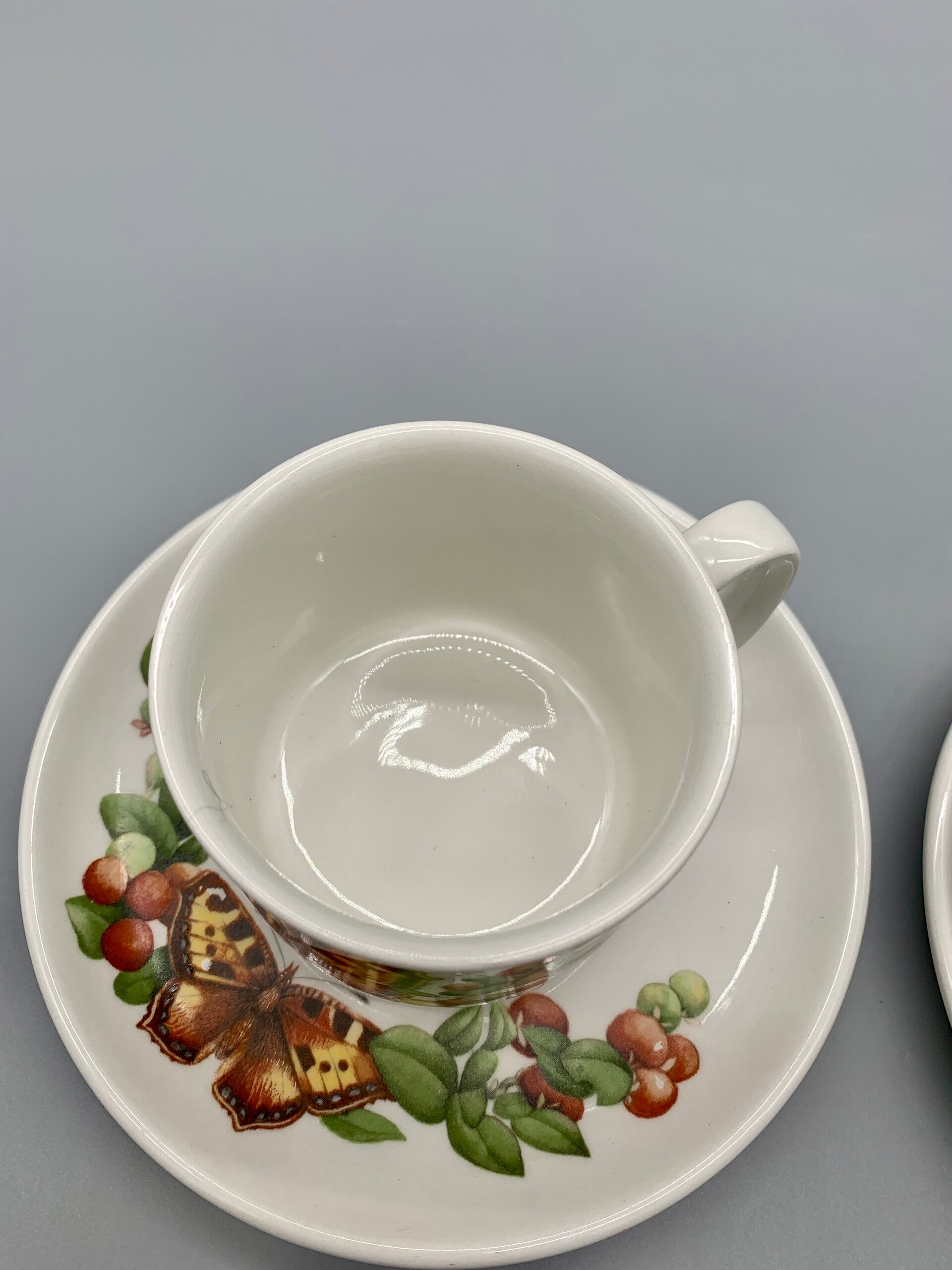 Set van 2 kop en schotels van het populaire bosvruchten servies. Prachtige print, op porselein van J&G Meaking Wedgwood Group. Ze zijn beide in perfecte staat.