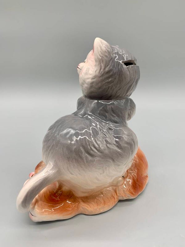 Een super schattige spaarpot, twee spelende katten in Aziatische look. Het is handbeschilderd en in leuk groot formaat. In zeer goede staat met twee minimale beschadigingen, te zien op de foto's. Is gemerkt sYc op de bodem.