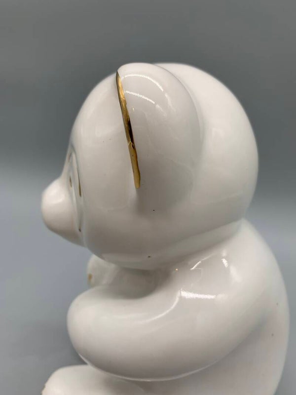 Wat een cutie! Ontzettend leuke decoratie deze beer van wit keramiek met gouden details. Is in zeer goede staat.