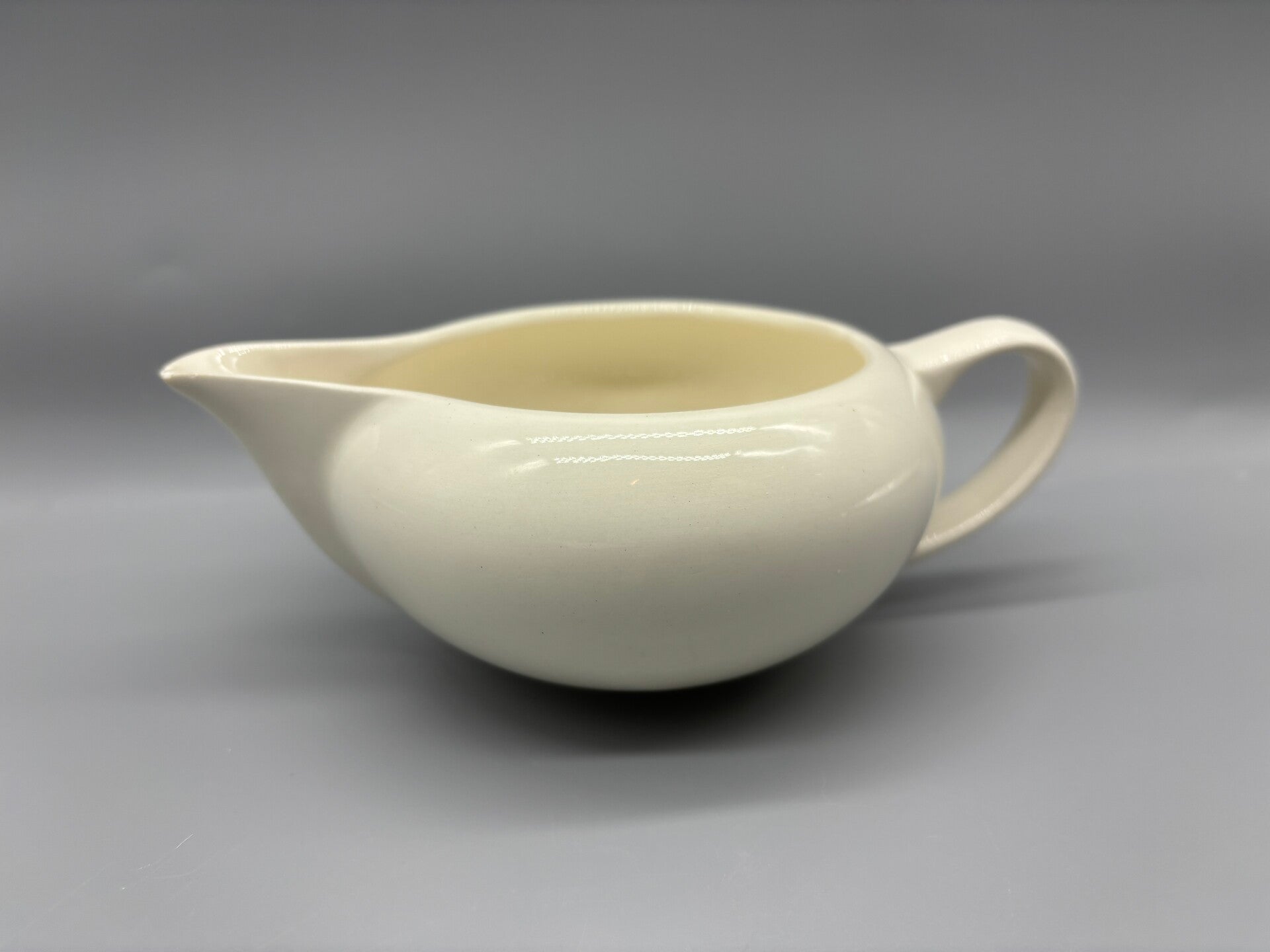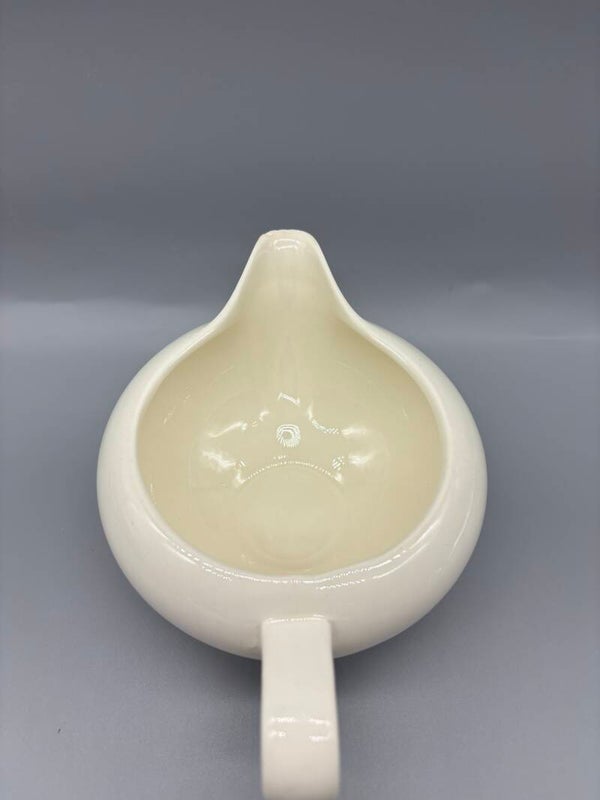 Roomkannetje in mooi model, creme kleurig. Kannetje is in zeeer goede staat, maar aan te merken is een kleine beschadiging aan de tuit.