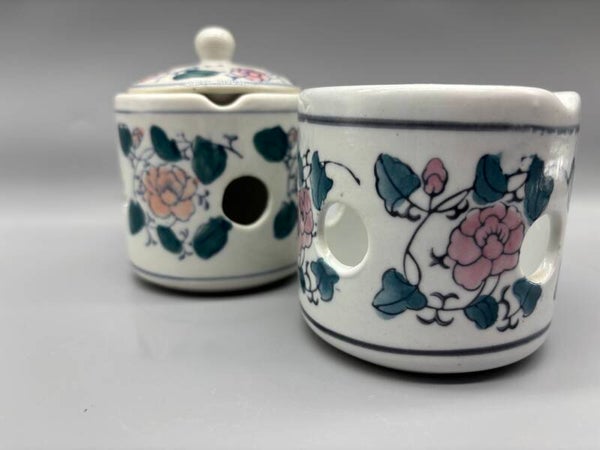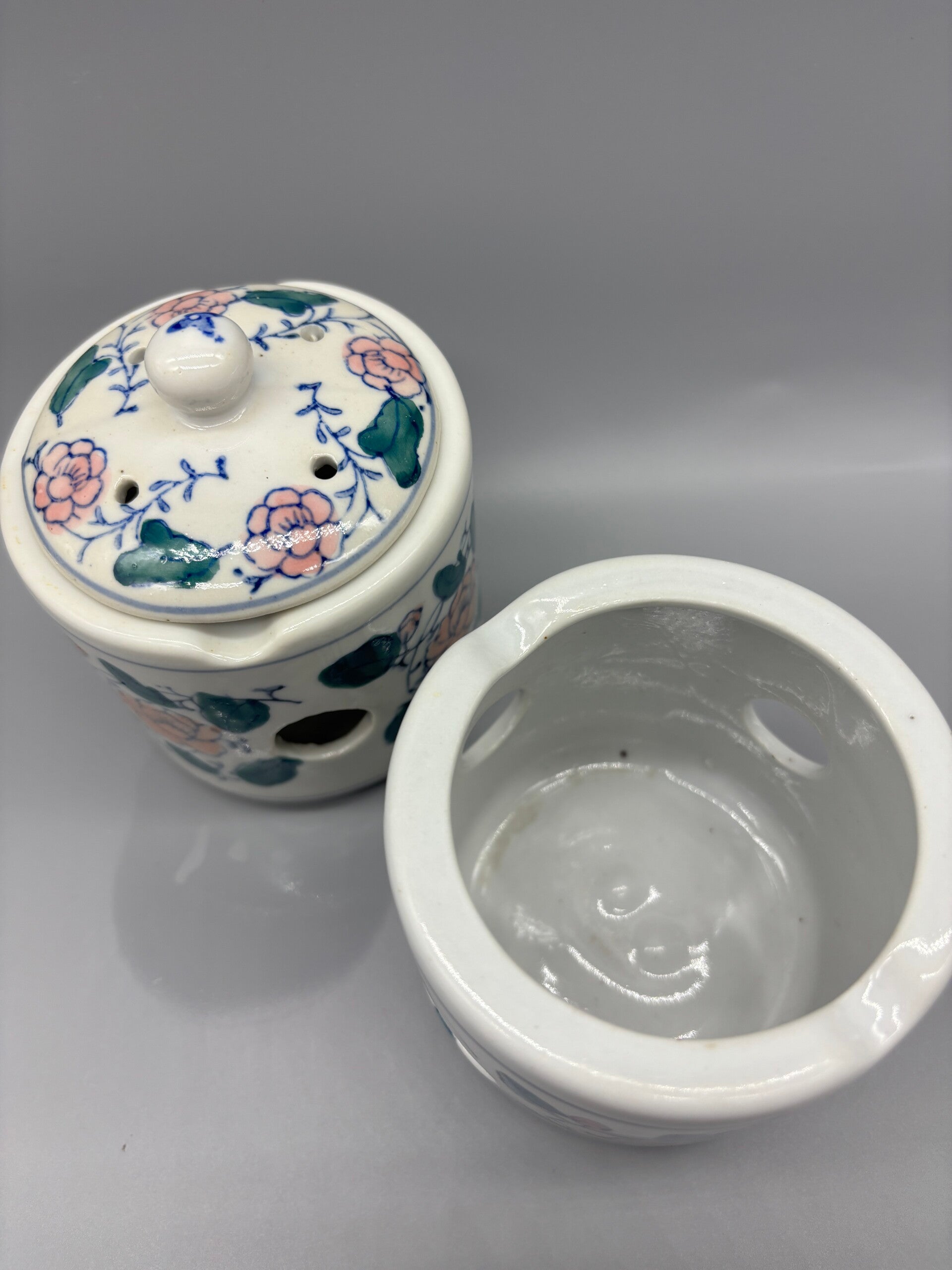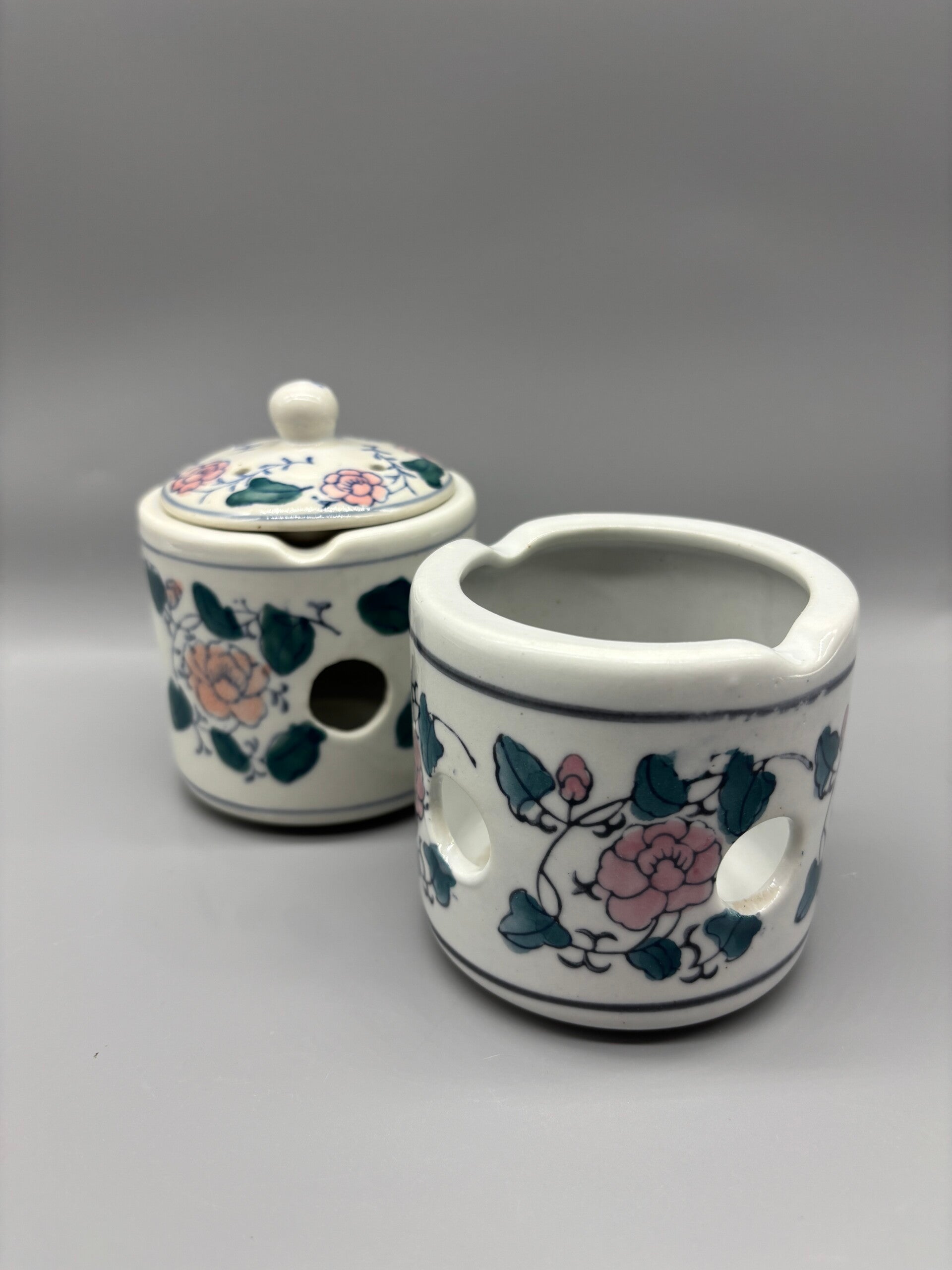 Een setje van 2, 1 heeft een deksel. Beide handbeschilderd en in zeer goede staat.