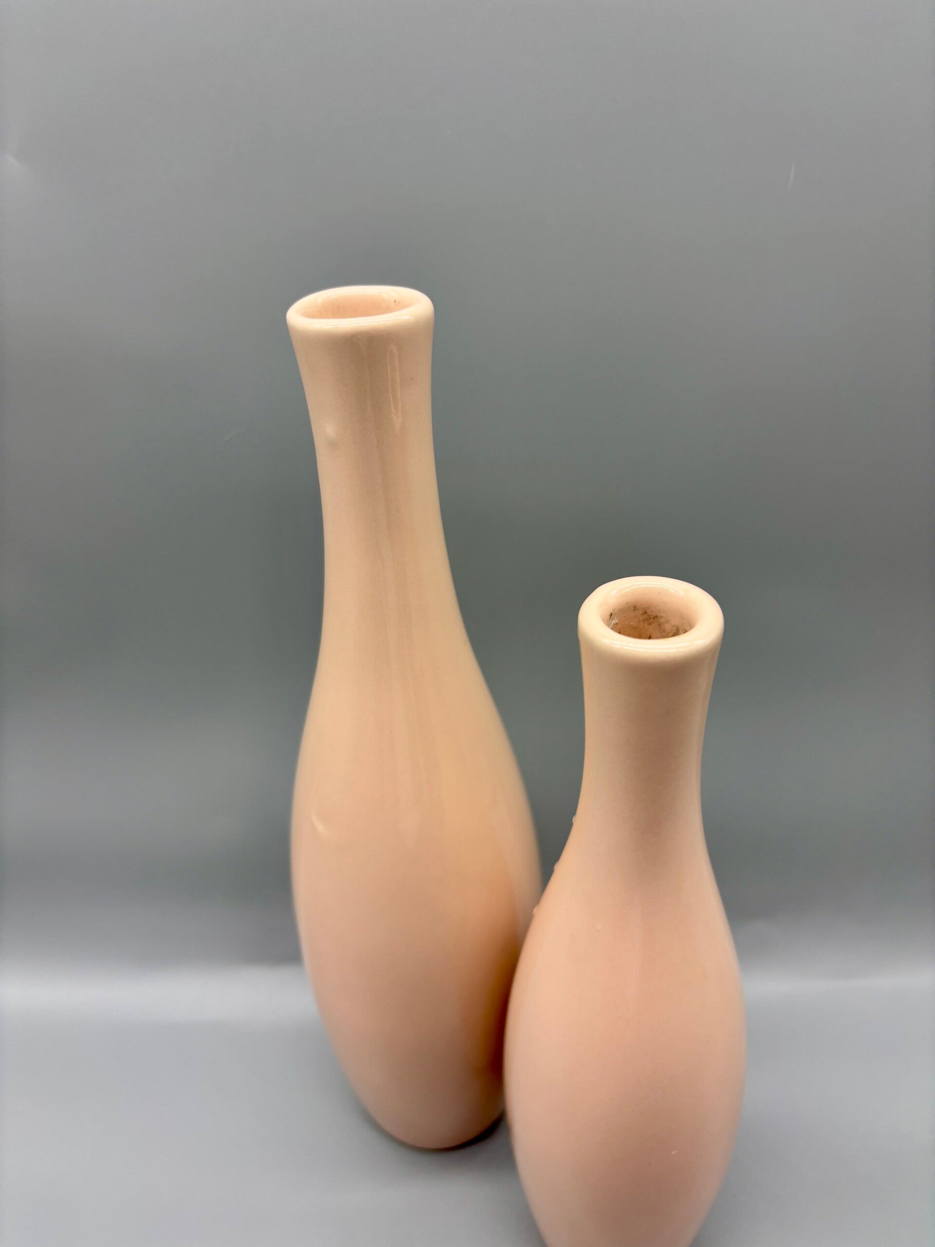 Afmetingen; L 26 cm hoog, en de bodem heeft een diameter van 5 cm. M 21 cm hoog en de bodem heeft een diameter van 4 cm.