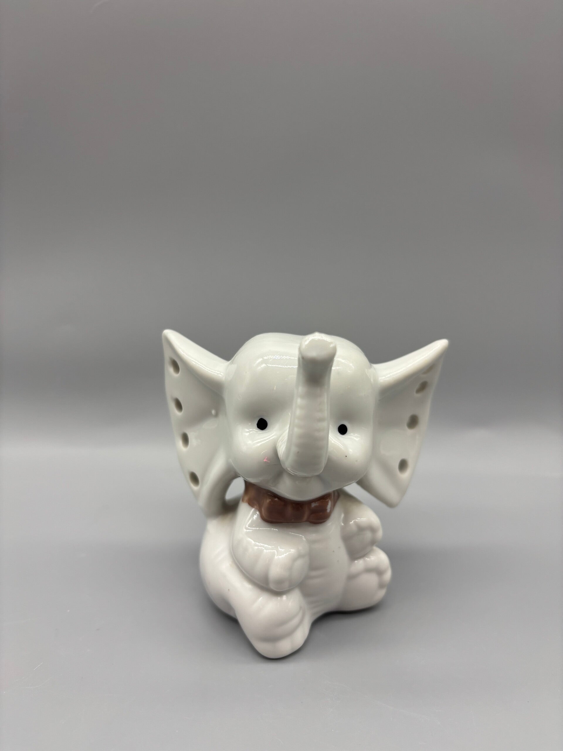 Nostalgie en nog altijd handig! Voor ringen en oorbellen, dit olifantje heeft een handbeschilderd strikje. In zeer goede staat.