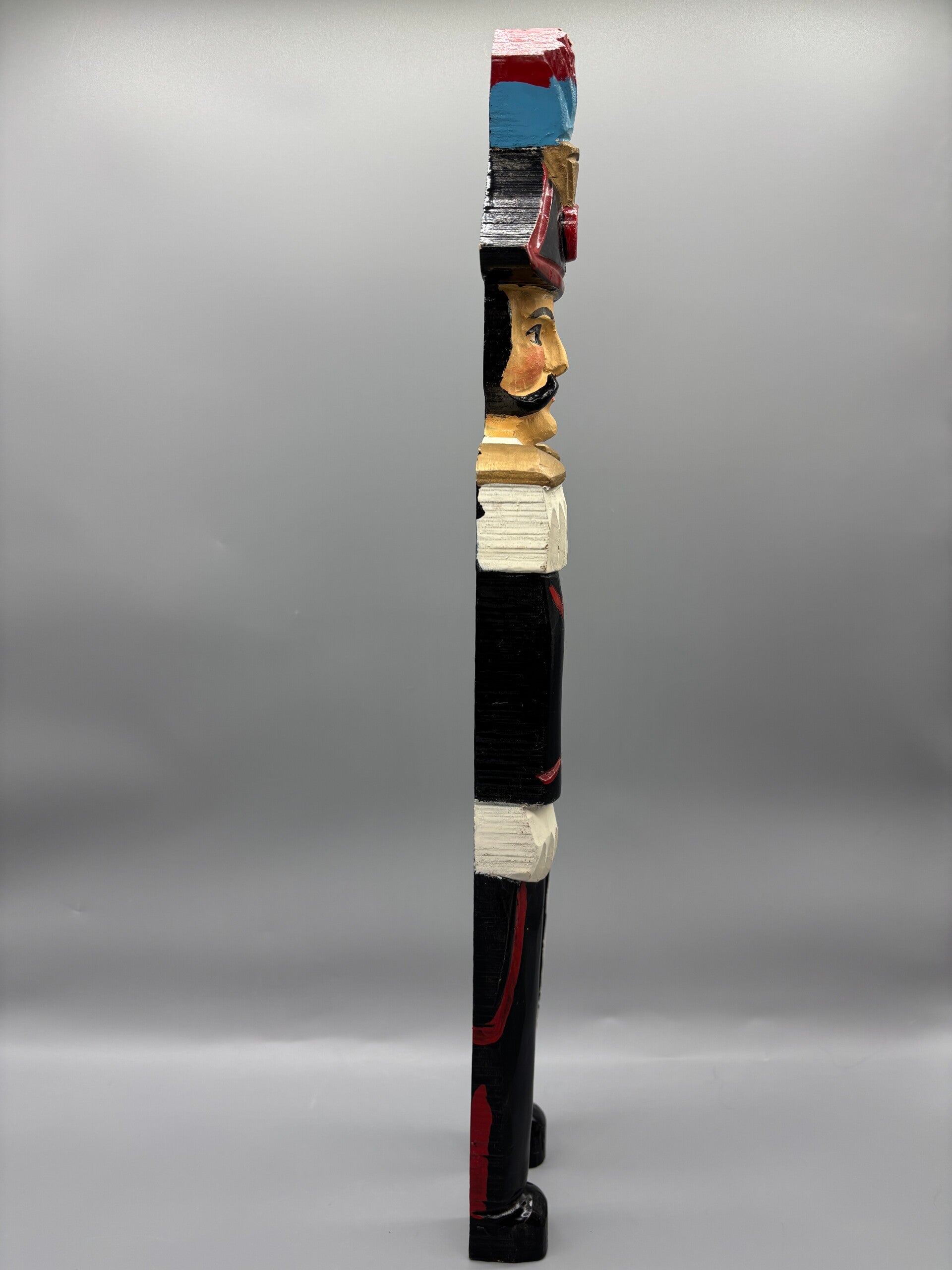 Prachtig en bijzonder, deze houten soldaat. Handwerk en gemaakt in Sicilie. Erg leuk ook voor aan de wand, in zeer goede staat, aan te merken een klein puntje van beschadiging aan de veer bovenop.
