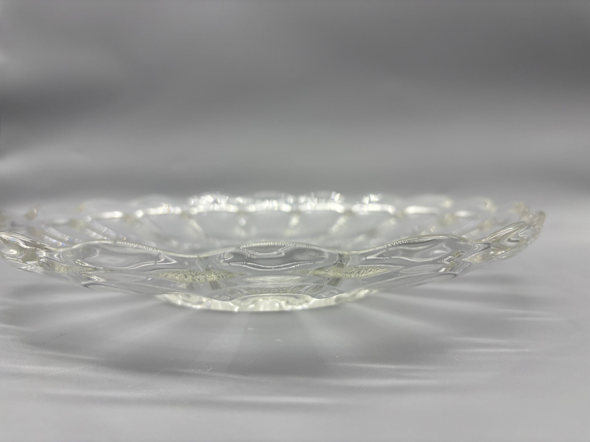 Wat een parel! De rand, de bubbeltjes in het glas, en het decor van satijnglas. Deze schaal is antiek, komt uit de jaren 20 en is toch in perfecte staat!