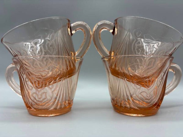 Prachtig decor, prachtige kleur peach! Een setje van 4 en alle 4 in zeer goede staat. Inhoud 100 ml.