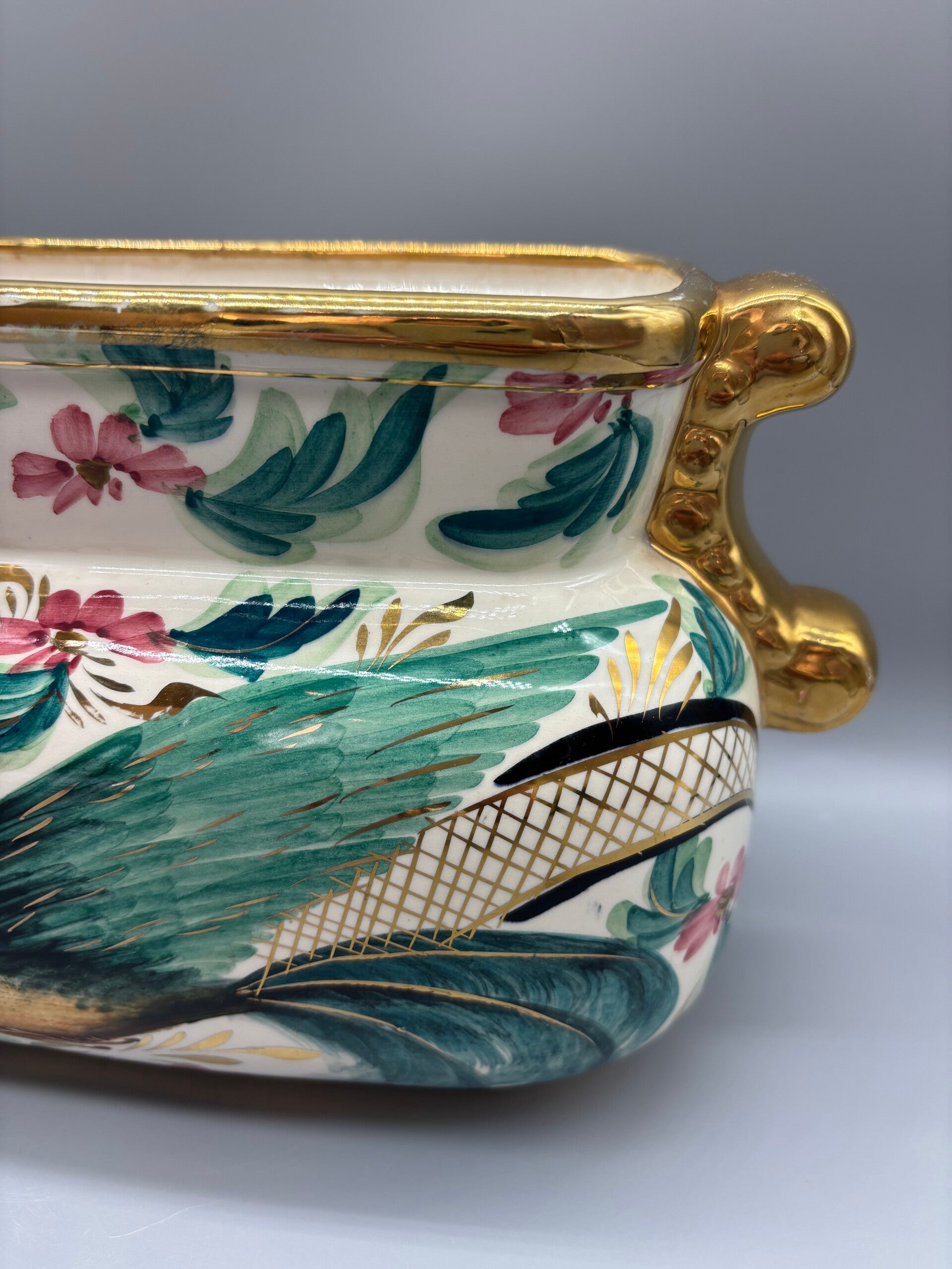 De jardinaire is in zeer goede staat, aan te merken is alleen dat het goud hier en daar wat sleets is.