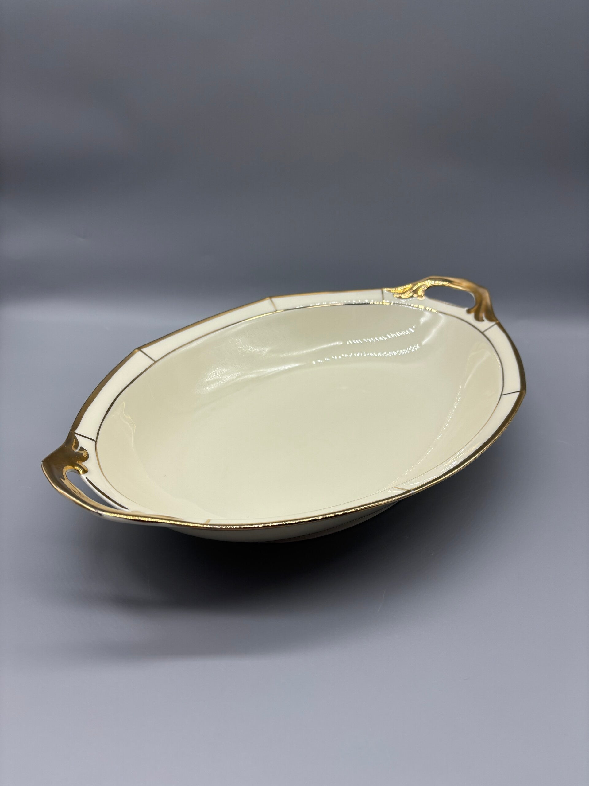 Wauw! Wij zijn er helemaal verliefd op. Wat een prachtig klassiek servies. Het is niet gemerkt, wel genummerd en waarschijnlijk gemaakt door Limoges France. De crème kleur met rijk vergulde lijnen, de kwaliteit van het porselein, echt heel prachtig.