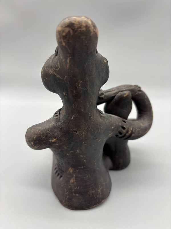Dit antieke objectje straalt zoveel moois uit, een moeder wie haar kind beschermd. Gemaaakt van klei en voor de leeftijd in een prachtige staat.