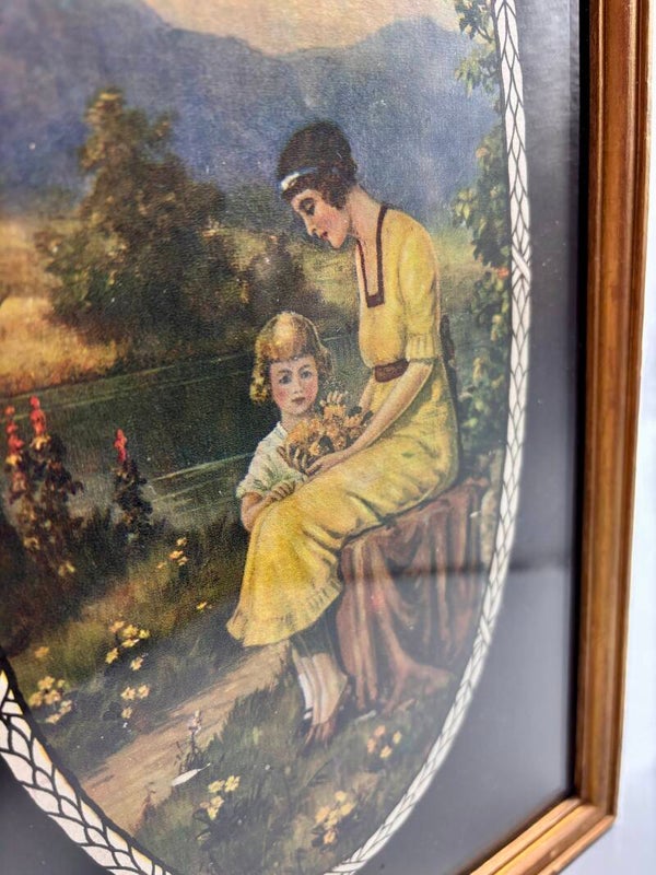 Prachtige, decoratieve prent. In een afgedichte, goudkleurige lijst achter glas. Geheel is in zeer goede staat.